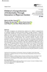 - Vanrell et al. (2025)Vanrell, M.M., Armstrong, M., Castroviejo, E., Mayol, L., i Mañas Navarrete, I. (2025). Children’s Comprehension of Evidentiality Through Intonation in Majorcan Catalan. First Language, 0(0). https://doi.org/10.1177/01427237251357668