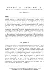 - Cremades (2025)-implantacióCremades, E. (2025). La implantació de la normativa sintàctica als mitjans de comunicació de les Illes Balears. Catalan Review, 39, 57–80. https://doi.org/10.3828/catr.39.4